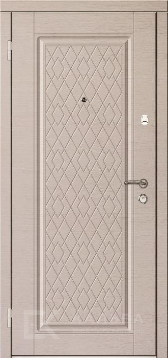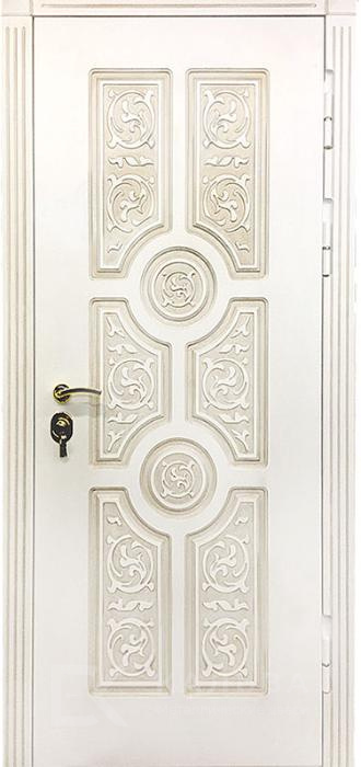 Фото «Металлическая дверь белая с классическим декором и ромбовой стёжкой №22»