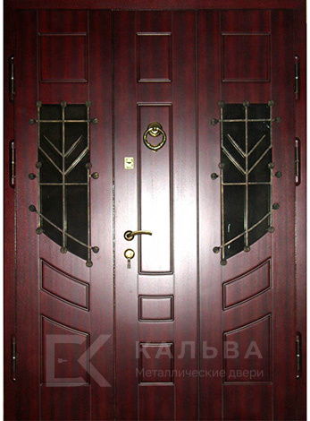 Фото «Металлическая полуторная дверь для квартиры орех с фрезеровкой №100»