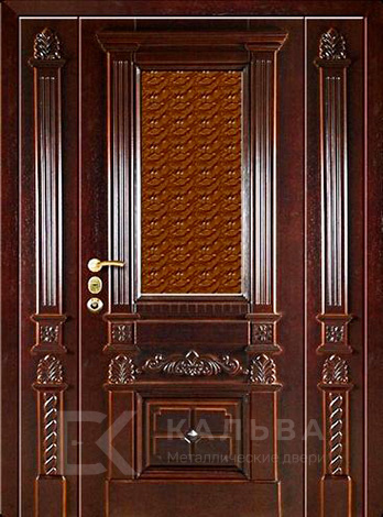 Фото «Железная двустворчатая дверь шоколадная с коваными ветвями и львиным молотком №112»
